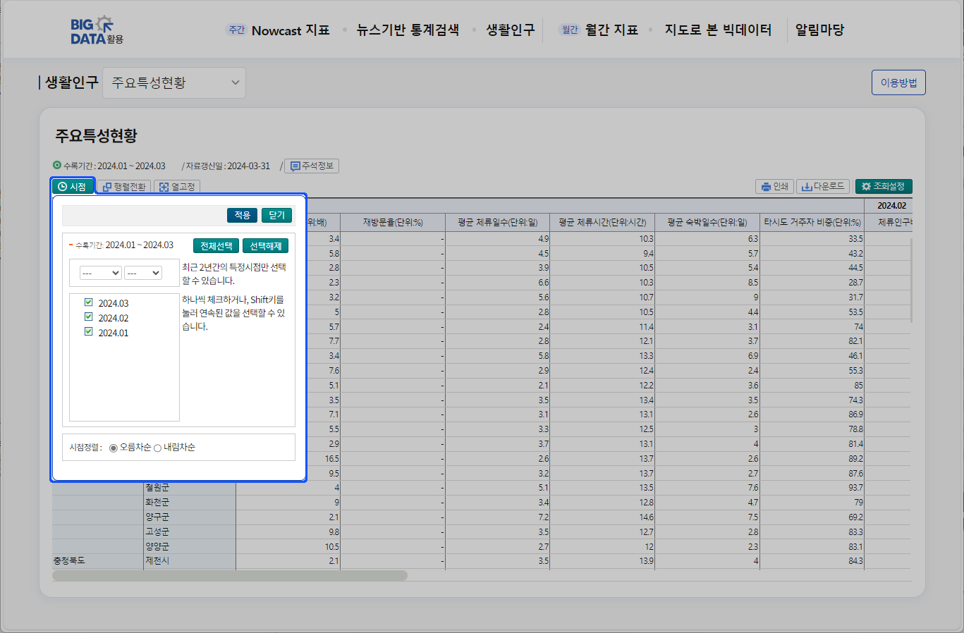 STEP2 시점 선택· 조회하고자 하는 월을 선택하여 조회할 수 있습니다.· 오름차순, 내림차순을 선택하여 시점별 정렬을 할 수 있습니다.
